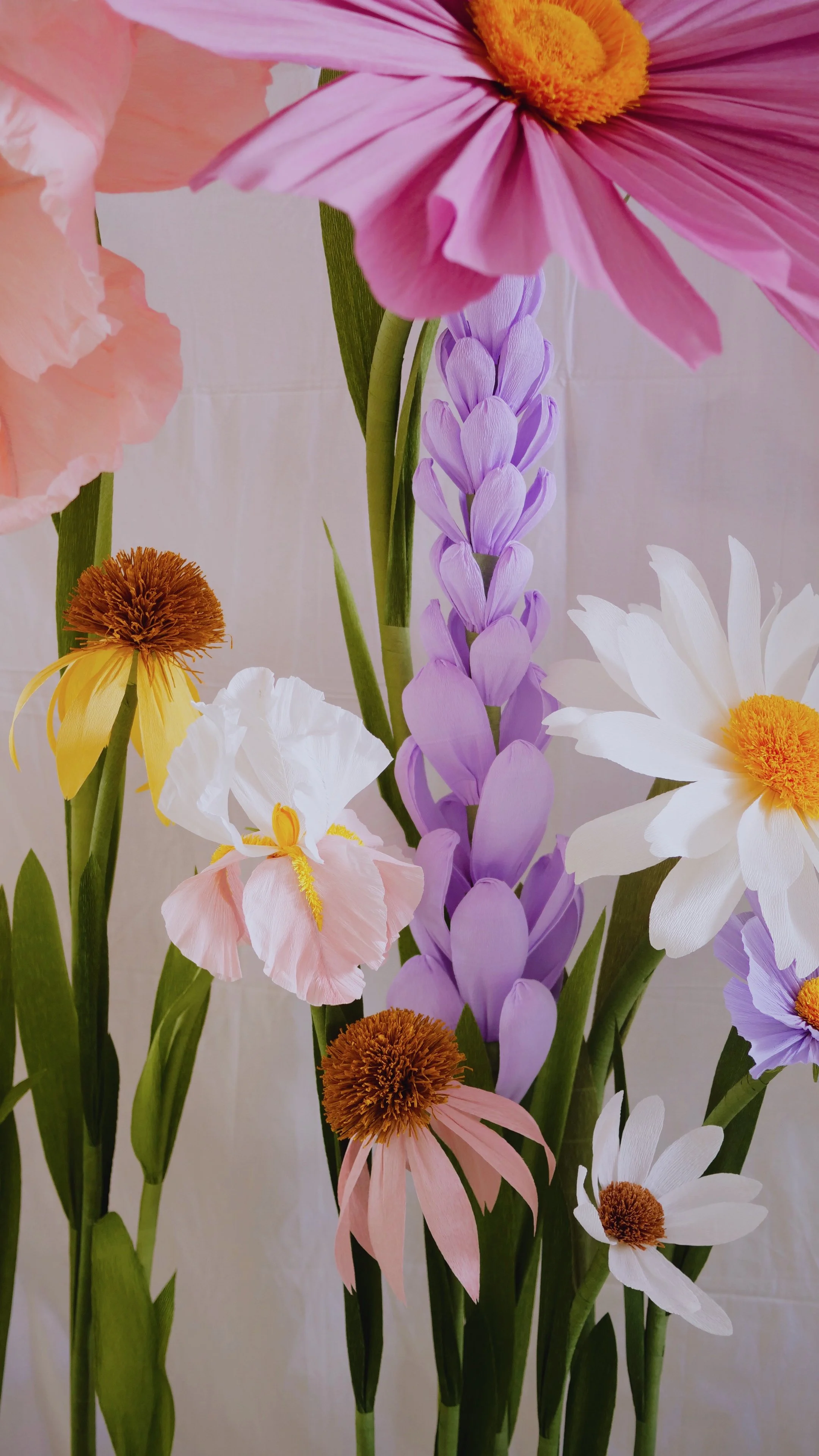 Pavots · Marguerites · Lavande · Echinacea · Lupin · Iris · Cosmos
