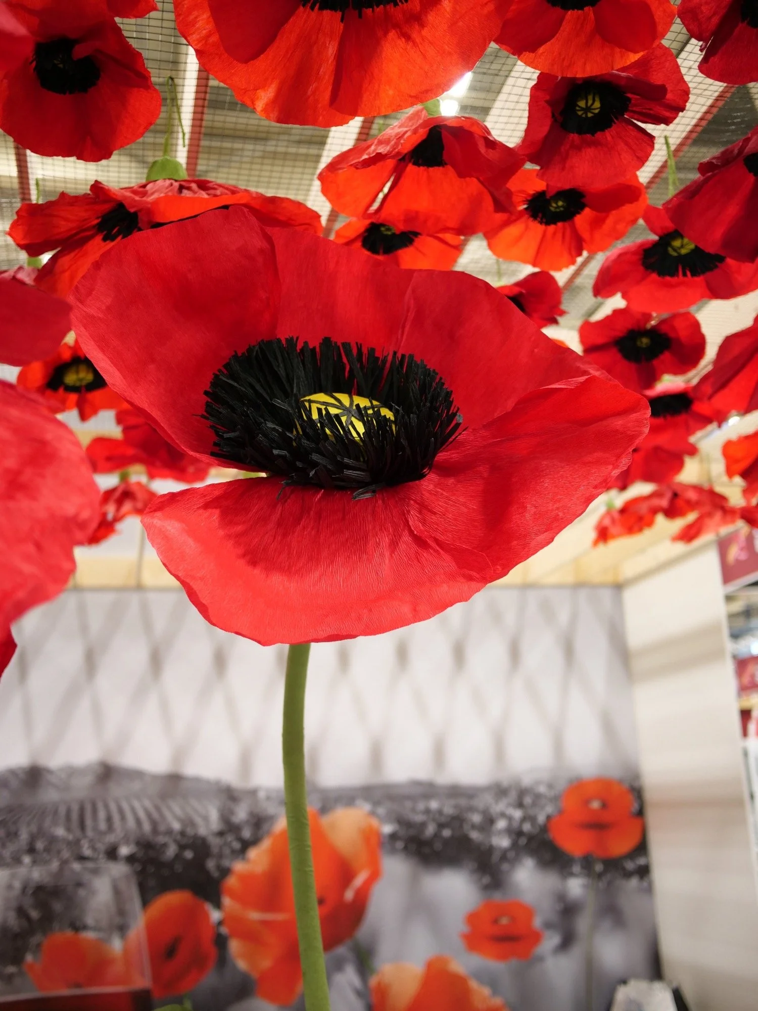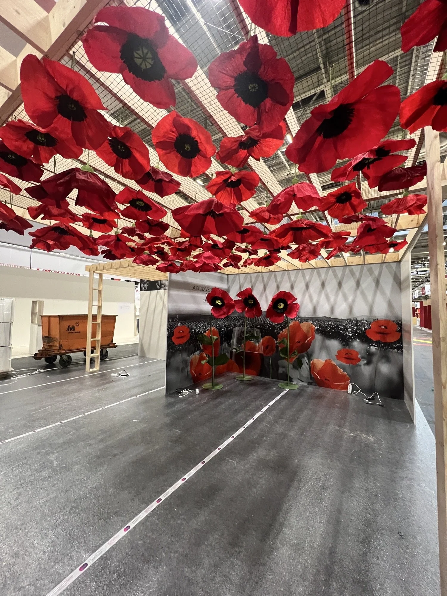 70 coquelicots suspendus (3 tailles différentes) + 3 coquelicots géants sur tige